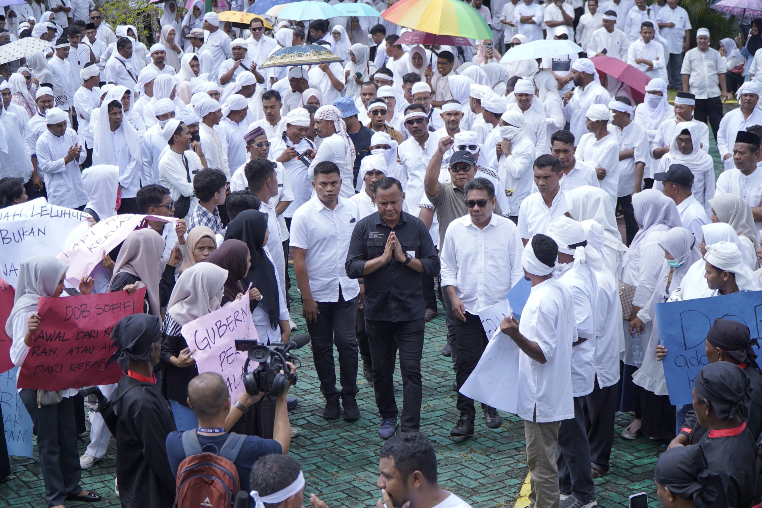 Diguyur Hujan, Massa Aksi Tolak DOB Sofifi Padati Kadaton Kesultanan Tidore