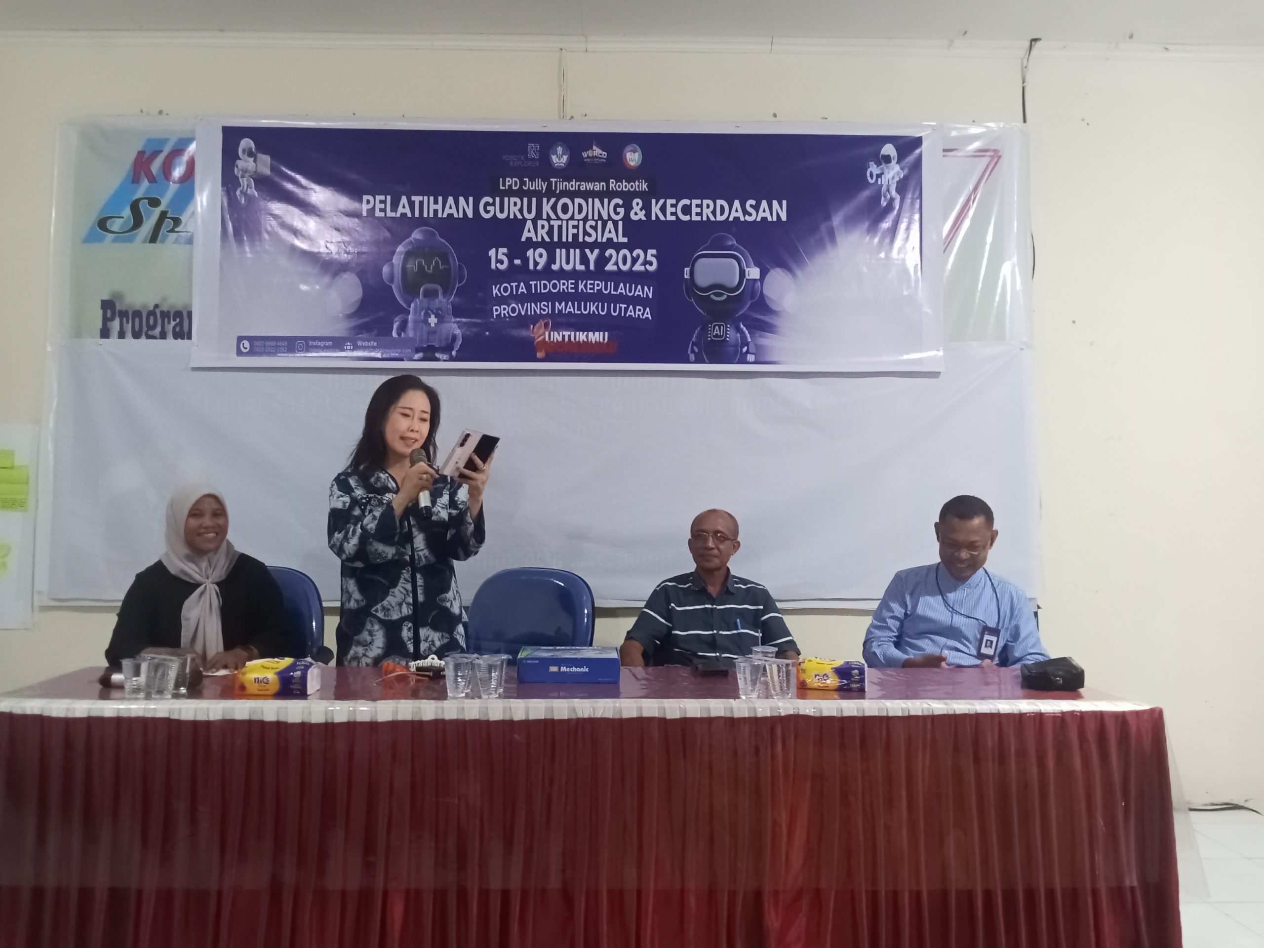 Jejaringmalut.com, Tidore – Direktur PT Jully Tjindrawan Robotik (TJR), Jully Tjindrawan, hadir di Kota Tidore Kepulauan (Tikep) untuk berbagi ilmu kepada para guru dalam kegiatan pelatihan coding dan kecerdasan artifisial yang berlangsung pada hari Jumat, 18 Juli 2025.