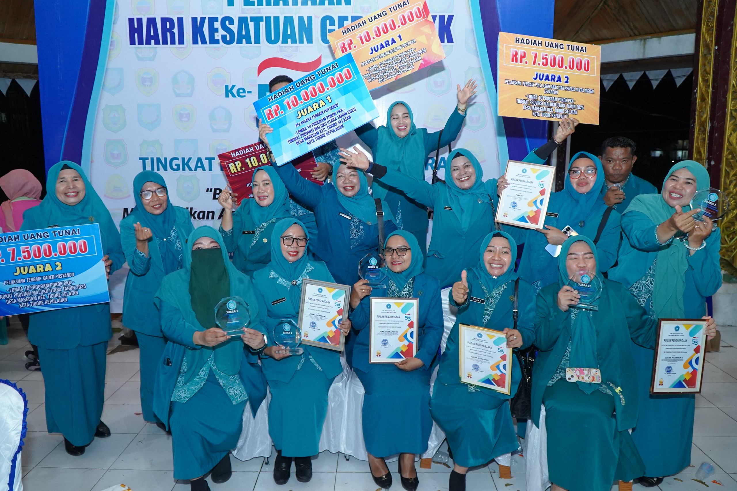 Juara Harapan 1 Lomba Gelar UP2K PKK, Juara Harapan 2 Lomba Penyuluh Kader, Juara Harapan 3 Lomba Senam Kreasi dalam rangka Hari Kesatuan Gerak (HKG) PKK ke 53 Tahun 2025 Tingkat Provinsi Maluku Utara Tahun 2025. *